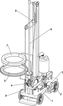 本发明涉及一种涂料装置,尤其涉及一种大型古建筑木制支撑柱自动涂料装置。本发明提供一种涂料均匀、涂料范围大的大型古建筑木制支撑柱自动涂料装置。一种大型古建筑木制支撑柱自动涂料装置,包括有:工作台和电机,工作台前侧中部设有电机;移动组件,工作台底部设有移动组件;拉伸机构,工作台顶部设有拉伸机构,拉伸机构与电机连接;涂漆装置,工作台顶部设有涂漆装置,涂漆装置与拉伸机构连接。本发明通过控制电机逆时针和顺时针转动,使得拉伸机构向上移动和向下移动,同时带动涂漆滚筒转动,涂料均匀且彻底;当涂漆装置向上移动时,第二挡块与棘轮卡合,防止涂料装置下落,增加装置的稳定性。