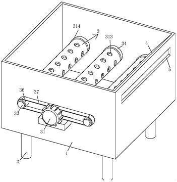 本发明提供一种充气式长料毛皮加工用清洗装置,包括用于对毛皮进行清洗的清洗箱、用于支撑清洗箱的支撑腿、和用于对毛皮进行固定并活动清洗的充气式气泡层清洗机构,所述清洗箱的底部固定连接有支撑腿,所述充气式气泡层清洗机构设置在清洗箱上,涉及毛皮加工领域。该充气式长料毛皮加工用清洗装置根据在清洗毛皮时存在的碎毛难以清洗的情况,设计出可以膨胀毛皮,并在膨胀过程中活动毛皮去除碎毛,且利用细密气泡形成清洗范围阻挡碎毛,从而有效的解决了一般的毛皮在加工的时候难以将修剪时产生的碎毛从毛内去除,大量的碎毛需要多次清洗步骤,不仅耗费了大量的清洗时间,而且清洗所需的能耗较高,在一定程度上影响了加工效率的问题。