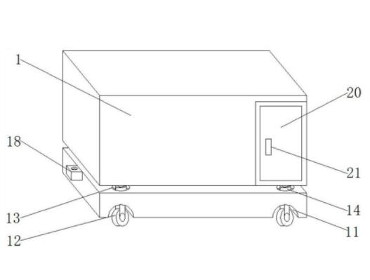 本实用新型公开了一种VR模拟互动交流训练装置,包括箱体,所述箱体的下方设置有底座,所述底座的底部四个边角处开设有轮槽,所述轮槽的内部固定安装有移动轮,所述底座的顶部开设有缓冲槽,所述缓冲槽的内部固定安装有伸缩杆。该一种VR模拟互动交流训练装置,在进行日常使用的过程中,通过牵引桩外接车辆托运,箱体通过移动轮移动,取代传统安放在商场等固定场所的方式,扩大了模拟训练范围和增加了参加训练的人员数量,方便更换场地,方便人们体验,提高了实用性,在移动装置时发生颠簸,可通过伸缩杆收缩压缩弹簧,弹簧受力发生变形,除去外力后恢复原状,来缓冲装置受到的震动,提高了装置的稳定性。