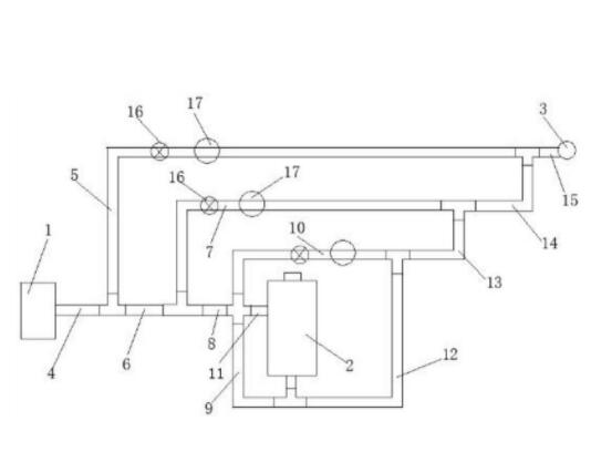 本实用新型公开了一种大型场所消杀系统,包括高压气源、压力密封容器、雾化喷头和若干连接管道及接头,所述高压气源上设置第一主气管,所述第一主气管分支为四级吹气支路和第二主气管,所述第二主气管分支为三级吹气支路和第三主气管,所述第三主气管分支为一级吹气支路、二级吹气支路和进气管,所述一级吹气支路通过三通连通压力密封容器的底部和一级出雾管的一端,所述进气管连通压力密封容器的上部,各级出雾管分别与各级出雾管连通。本实用新型提供一种能够充分雾化消毒液,便于对大型场所空间的消杀操作,安全性高,消杀效果好。