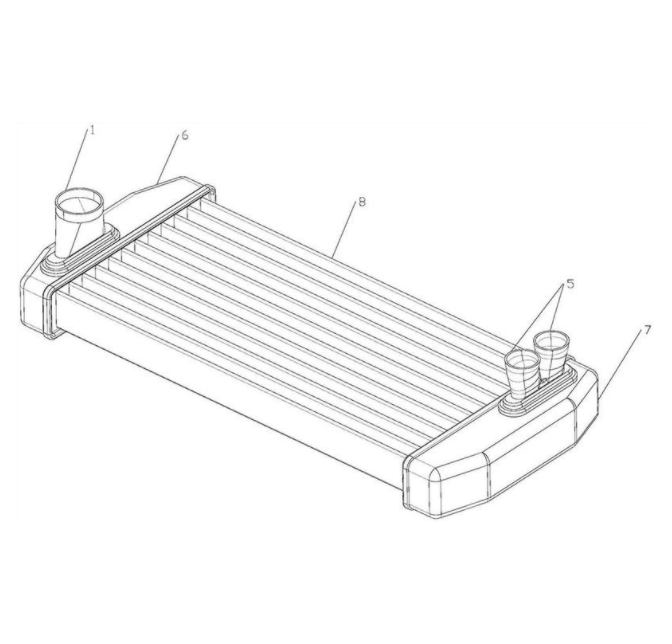 本实用新型公开了一种热交换器用缓流管道接头,为单口式管道接头或多口式管道接头。本实用新型还提供一种含有该接头的热交换器。本实用新型的多种管道接头可有效降低冷却液对热交换芯子的压力和冲击力,防止热交换器漏液后对硬件造成损伤,有效提高热交换器的换热效果,相对于现有技术,本实用新型提高了热交换器的安全性,且管道口径可大于水室宽度,避免常规的小管道口径?大水室宽度的热交换器中,水室宽度过大导致用水量大、整体尺寸大、流体涡流严重的问题。本实用新型结构简单,外形美观,质量轻,安装简单,使用时安静,降温稳定,对环境依赖小,散热效果明显,且使用寿命长。