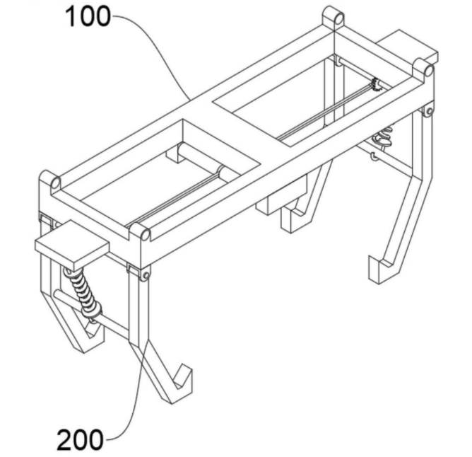 本实用新型涉及吊具技术领域,具体地说,涉及一种可自动松锁的机械式四爪吊具。其包括吊架,所述吊架底部设有两个对称的夹持装置,所述夹持装置包括两个对称的吊钩,所述吊钩铰接在所述吊架底部,所述两个吊钩之间设有连杆,所述连杆与所述吊架之间铰接有弹簧,所述吊架底部中心处设有两个对称的棘轮机构,所述棘轮机构包括棘轮盘,所述棘轮盘通过连接杆固定在两个所述吊钩之间,所述棘轮盘外壁啮合有压杆,所述压杆铰接在所述吊架底部。本实用新型可实现自动松锁夹持稳定性,方便后续安全起吊工件,节省劳动强度。