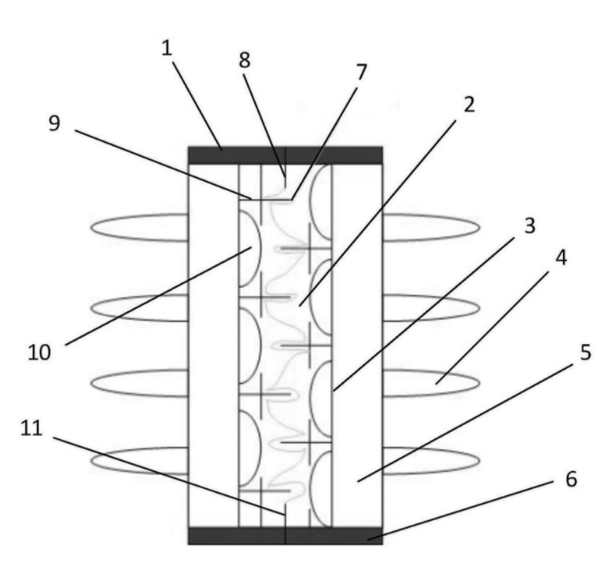 本实用新型公开了一种液电效应压力多点遮断电弧的防雷装置,属于灭弧防雷技术领域,防雷装置设置为一个密封管,密封管两端分别设置上电极和下电极密封设置,密封管内设置有绝缘油,密封管的侧边设置有裙边,密封管的内侧边上间隔设置有灭弧栅,灭弧栅横向长度大于密封管的二分之一内径。本实用新型截断电弧迅速,电弧在液体中放电产生液电效应,迅速形成冲击压力波,冲击电弧在刚刚形成之时就立即被截断。冲击电弧重燃被延迟,陶瓷管内的高压破坏了持续放电条件和重燃条件,截断冲击电弧后,重燃击穿时间被大幅度延迟十几到几十微秒以上,雷电流的陡度显著降低90%,电流幅值衰减50%以上。