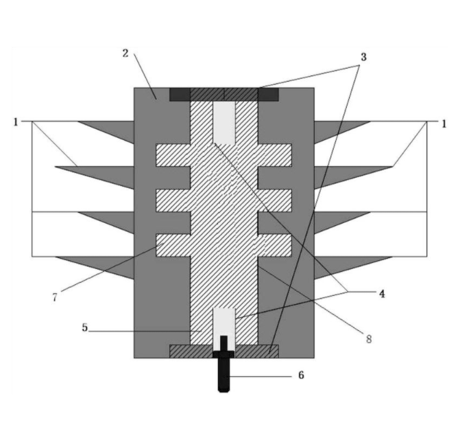 本实用新型公开了一种快速中断建弧过程的装置,属于防雷灭弧技术领域,包括陶瓷外壳、密封金属电极、放电棒、空腔绝缘液体介质和陶瓷管,陶瓷外壳包裹在陶瓷管的外侧,密封金属电极设置在陶瓷外壳与陶瓷管的两端并密封设置,空腔绝缘液体介质设置在陶瓷管内,放电棒设置在密封金属电极的内侧,并浸没在空腔绝缘液体介质内。本实用新型截断电弧迅速,电弧在液体中放电产生液电效应,迅速形成冲击压力波,雷电冲击电弧在建立初期就立即被截断。其反应速度迅速,且具有这样的特点,在电弧功率最大能量最大时,产生的反冲能量也最大。