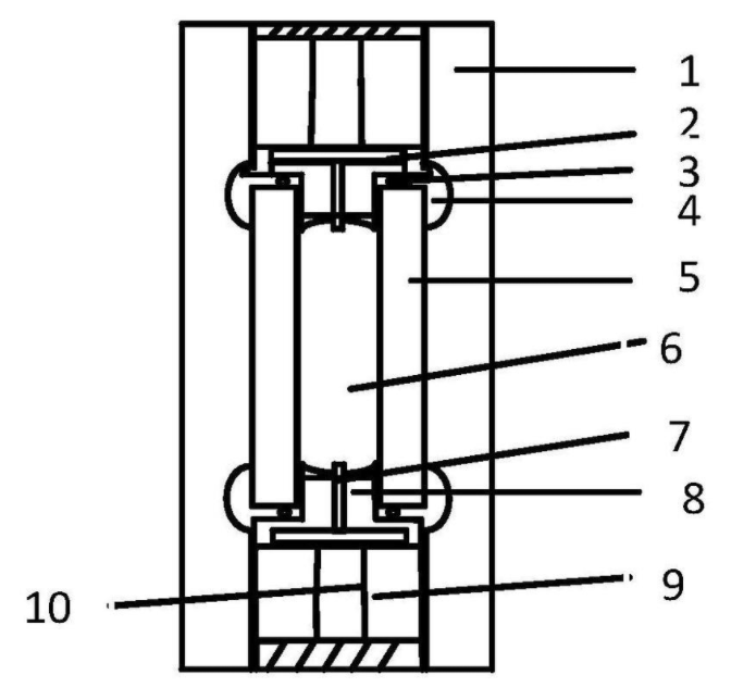 本实用新型公开了一种承受高强度压力密封的灭弧装置,属于防雷灭弧技术领域,包括塑胶套、钢套、陶瓷管、灭弧绝缘液体、导电极、密封硅胶,导电极嵌套在密封硅胶内,密封硅胶密封设置在陶瓷管的两端,钢套紧固在密封硅胶与陶瓷管的连接处的外侧,灭弧绝缘液体设置在陶瓷管内,塑胶套套设在钢套和陶瓷管的外侧。本实用新型电弧在液体中放电产生液电效应,形成冲击压力波,冲击电弧在刚刚形成之时就立即被截断,陶瓷管内的高压破坏了持续放电条件和重燃条件,截断冲击电弧后,重燃击穿时间被大幅度延迟十几到几十微秒以上,优化灭弧电流遮断机制,将产生的压力波聚焦到灭弧通道上的一点,在焦点处产生更大的压力,遮断能力更强,结构简单,密封性能好。