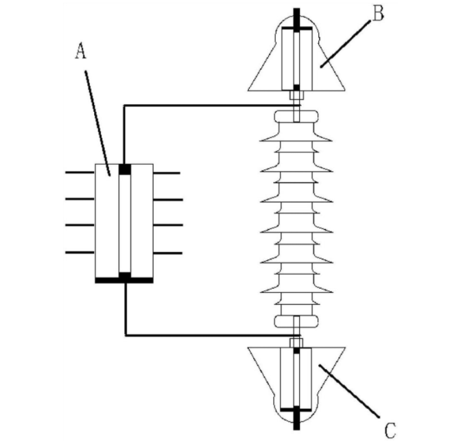 本实用新型公开了一种串并联式灭弧防雷装置,属于灭弧防雷装置领域,包括密封灭弧单元、上端部灭弧单元和下端部灭弧单元,上端部灭弧单元设置在绝缘子串的顶端与顶端塔杆之间,下端部灭弧单元设置在绝缘子串的底端与底端塔杆之间,密封灭弧单元通过螺杆并联设置在绝缘子串上。本实用新型与传统断路器相比,新型防雷装置能够瞬间地、整体地、同时地截断电弧,冲击电弧在刚形成之时就被截断,具有极快的灭弧速度,液体介质绝缘恢复速度比阀片更加迅速:由于电弧在装置内被同时压断,使得介质整体绝缘得到恢复,并且具有抗重燃性,在经过本装置,电弧传递介质热量低,导致介质温升降低,进而热击穿的概率非常低。