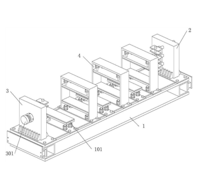 本实用新型公开了一种侧墙可旋转焊接工装,涉及机械加工技术领域。本实用新型包括焊接平台、定位组件、翻边组件和固定组件,焊接平台上侧旋接固定有承托组件,焊接平台上侧一端旋接固定有定位组件,定位组件上端一侧卡接有第一固定夹,焊接平台上侧相对于定位组件另一端旋接固定有翻边组件,翻边组件一侧贯穿旋接有转动电机,转动电机相对于翻边组件另一侧旋接固定有转盘,转盘相对于翻边组件另一侧焊接固定有第二固定夹,焊接平台上侧旋接固定有固定组件。本实用新型通过焊接平台、定位组件、翻边组件和固定组件,解决了现有的侧墙焊接工装对侧墙板的夹装方式复杂,焊接后产品的平面度较差,通用性不高,翻边费时费力的问题。