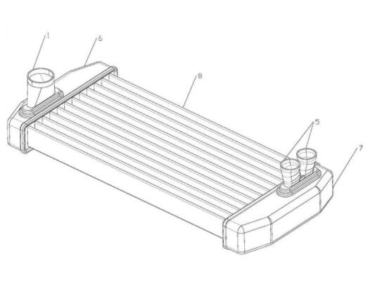 本实用新型公开了一种热交换器用缓流管道接头,为单口式管道接头或多口式管道接头。本实用新型还提供一种含有该接头的热交换器。本实用新型的多种管道接头可有效降低冷却液对热交换芯子的压力和冲击力,防止热交换器漏液后对硬件造成损伤,有效提高热交换器的换热效果,相对于现有技术,本实用新型提高了热交换器的安全性,且管道口径可大于水室宽度,避免常规的小管道口径?大水室宽度的热交换器中,水室宽度过大导致用水量大、整体尺寸大、流体涡流严重的问题。本实用新型结构简单,外形美观,质量轻,安装简单,使用时安静,降温稳定,对环境依赖小,散热效果明显,且使用寿命长。