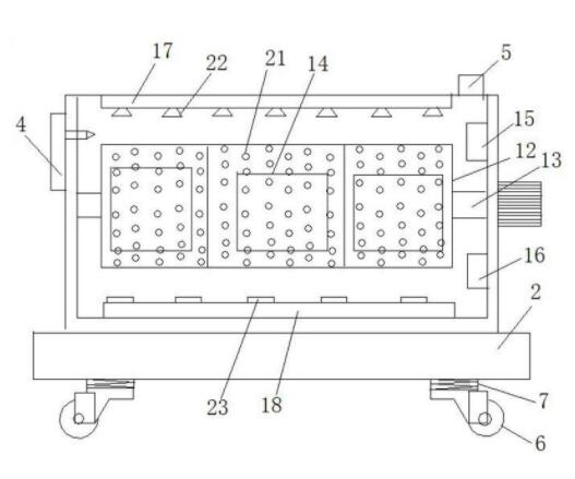 本实用新型公开了一种制作烘焙食品用的恒温恒湿发酵器,包括箱体和底座,所述底座固定设置在箱体底部,箱体的正面设有开关门,该箱体内中部横跨设置有滚筒,该滚筒通过两端设置转轴可转动地固定在箱体中部,且该滚筒的侧壁为镂空状并设有滚筒门,箱体外侧设有转动电机,转轴的一端穿过箱体侧壁与转动电机连接,箱体内侧壁设有温度探测器和湿度探测器,箱体内顶部设有喷雾板,箱体内底部设有进气装置,该箱体的外侧还设有控制器,温度探测器、湿度探测器、喷雾板、进气装置和转动电机均与控制器连接并通过控制器控制开关,箱体上部设有出气口。本实用新型的装置能在使面粉发酵的过程中恒温恒湿并保证发酵均匀,且操作简单,便于使用。
