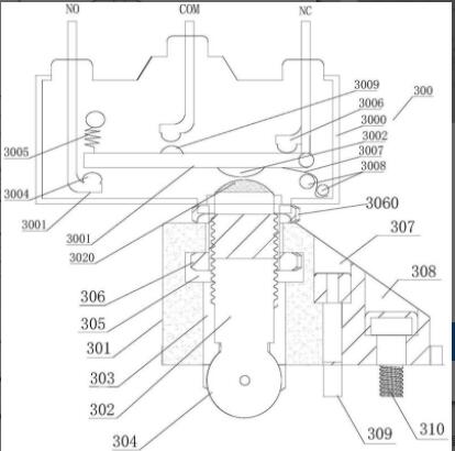 本实用新型公开了一种大电流连接器微动开关装置,包括大电流连接器和设置在大电流连接器上的微动开关,大电流连接器包括插头以及与插头相互配合插接的插座,在插座的外壁上设置插入插座内部的微动开关,微动开关包括开关本体、开关底座和按钮插杆,按钮插杆分别呈竖直滑动设置在开关本体和开关底座内,在开关底座上设置有由上下贯通的第一通孔,按钮插杆设置在开关本体内,该按钮插杆的自由端部从所述开关本体内向下竖直伸出,且按钮插杆从第一通孔的一端外部贯穿伸出至另一端外部,在按钮插杆的自由端部上设置有金属接触部,本实用新型能快速地进行闭合和分开,从而以快速地检测和判断连接器是否插接到位,并检测电流通过连接器时发热现象。