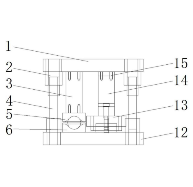 本实用新型公开了一种用于无缝管成形冲剪一体冲模,包括上顶板座、导向轴和下底板座,所述下底板座的顶部等距安装有导向轴,所述导向轴之间固定安装有下压块,所述下压块的顶部活动安装有退料板,所述下压块的一侧固定设置有下刀片,所述导向轴的顶部贯穿安装有上顶板座,所述上顶板座的底部活动安装有导向压块垫板,所述导向压块垫板的一侧等距安装有活动刀架。本实用新型通过在下压块的一侧固定设置有下刀片,能够利用该用于无缝管成形冲剪一体冲模将无缝管进行压扁、冲孔及剪切,实现无缝管成形,达到一模多用的效果,和现在加工技术对比,是另外一种加工工艺,有效提升了标准节内撑杆的加工效率。