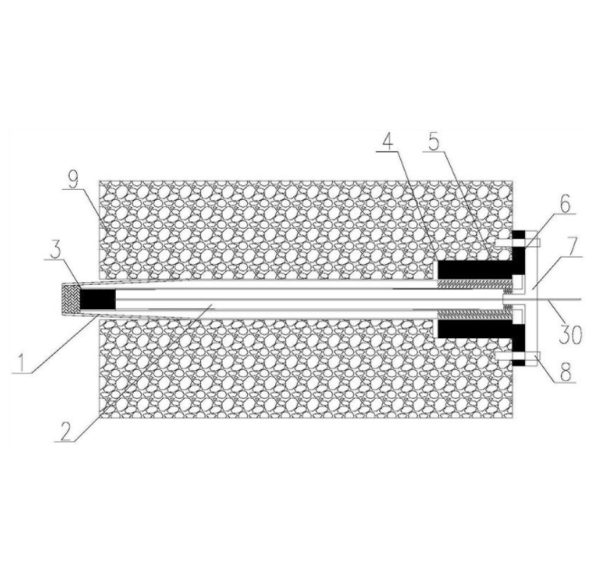 本实用新型公开了一种在既有隧道二衬外进行水压监测的装置,包括设置在衬砌内的安装孔洞、设置在所述安装孔洞内的套管、内管、水压计和固定卡座,在接近套管安装端的外壁设置有向外凸出的环形卡接支撑部,所述套管的安装端通过环形卡接支撑部设置在圆孔支撑台上,在所述套管的检测端内设置有过滤层,套管的固定端和内管的固定端通过固定卡座安装在安装孔洞上端边缘的衬砌外壁上,所述套管的检测端与所述过滤层的表面抵触,在所述内管的检测端内设置与所述过滤层接触的水压计。本实用新型在水压计损坏时能够及时取出内管,替换损坏的水压计时,无需再另外打孔进行埋设水压计,在监测结束后,水压计也可取出回收利用。