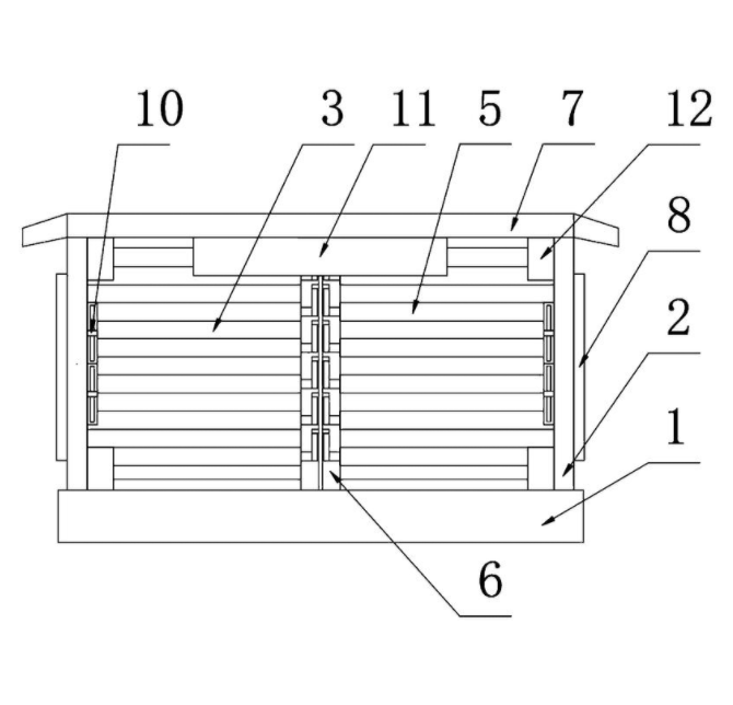 本实用新型公开了一种自动控温的户外配电柜,具体涉及户外配电柜技术领域,包括固定底座,所述固定底座的顶面固定安装有所述侧壁,所述背板,所述侧壁的数量为两个,左右对称安装在所述固定底座的两侧,所述背板开设有所述条形通风孔,所述条形通风孔活动安装有所述活动窗叶,所述活动窗叶活动连接有所述联动组件。本实用新型通过设置方形通气孔,在配电柜工作过程中,电元件做工产生大量的热,感温器察觉到温度上升,使得空调开始运行进行降温,在空调进行工作一段时间后,通风扇进行工作,通过通风扇帮助电元件快速散热,同时带走冷热空气交替产生的水分,既加快了降温速率,提高了工作效率,又带走了水分,避免了水分对电路的损坏。