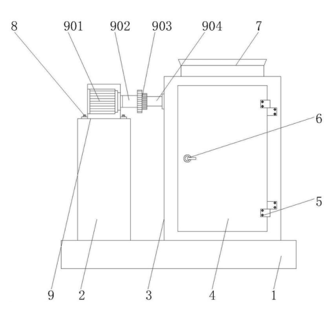 本实用新型公开了一种用于妇科凝胶的原料粉碎装置,涉及医药技术领域。本实用新型包括粉碎机构和收集机构,粉碎机构包括的伺服电机一端转动连接有轴杆通过联轴器转动连接有转杆,转杆一端外侧固定连接有主动齿轮,且主动齿轮啮合连接有从动齿轮,从动齿轮固定连接在横杆外侧,且横杆外侧等距均匀固定连接的刀片与转杆外侧等距均匀固定连接的刀片相互交叉,收集机构包括的滤网设置在托块上侧,且托块通过固定螺栓固定在外壳内部两侧,外壳内部底端两侧固定连接有连接杆,且连接杆外侧套接有滚轴,滚轴上侧设置有收集箱。本实用新型通过设置粉碎机构和收集机构,具有提高妇科凝胶原料本体粉碎效率以及便于收集粉碎后的妇科凝胶原料本体的优点。