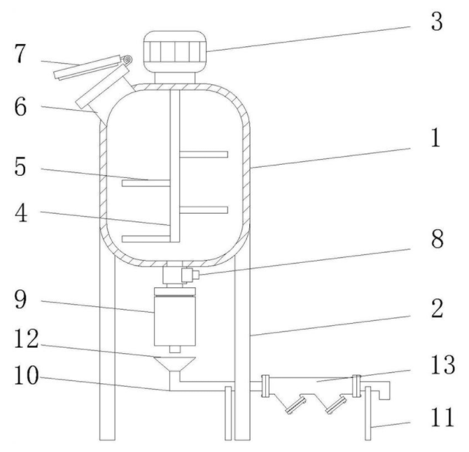 本实用新型公开了一种口腔喷雾原料的混合装置,涉及口腔健康产品技术领域。本实用新型包括混合罐体、搅拌电机、原料过滤机构和滤液过滤机构,混合罐体的底部焊接有支腿,混合罐体的顶端安装有搅拌电机,搅拌电机的底端安装有搅拌轴。本实用新型通过设置原料过滤机构和滤液过滤机构,原料过滤机构可将混合搅拌后溶液中的中草药过滤掉,而使滤液排出,然后滤液再通过滤液过滤机构进行更为精细化的过滤,如此经过混合搅拌排出的口腔喷雾溶剂便无需再倒入专门的过滤机构中进行过滤,减轻人员的工作强度的同时,能够缩短口腔喷雾的制备流程,提高制备效率,解决了现有的技术功能单一,工作效率低的问题。