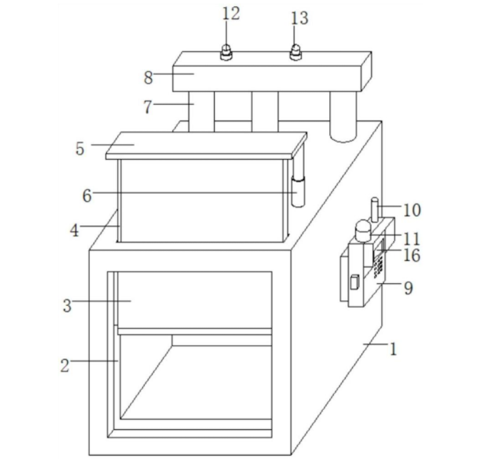 本实用新型涉及炉窑温度监控加工技术领域,具体为一种陶瓷煅烧炉窑温度监控系统,包括炉窖,炉窖的前端设有开口,开口的内部滑动连接有契合板,契合板密封开口,契合板的上端贯穿炉窖的顶部连接有顶板,顶板的一侧连接有液压缸,液压缸的顶部与炉窖的顶部连接,炉窖的顶部位于液压缸的一侧导通有多个导管,多个导管之间通过连通管连通,连通管的上端分别连接有温度传感器和气压传感器,炉窖的一侧设有控制器,该一种陶瓷煅烧炉窑温度监控系统,方便人员对炉窖的温度环境进行实施监测,避免炉窖生产环境不达标,造成产品不合格问题,方便人员对多个炉窖进行同步管理与查看,同时解决传感器容易老化问题。