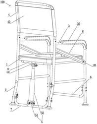本实用新型公开了一种蹲坐厕两用座便椅,包括坐便椅本体,该坐便椅本体包括坐板、支撑腿、扶手、靠背和升降装置,所述坐板转动设置在所述坐便椅本体的中心,在支撑腿前后方两侧的下端分别横向设置有呈对称设置的前托杆和后托杆,在两侧扶手的下方设置有支撑杆,所述坐板的前端两侧转动连接在支撑杆上,所述坐板的后端通过升降装置连接在所述后托杆,在所述坐板镂空有坐便孔,本实用新型的座便椅实现了蹲坐两用,简单方便,安全实用。