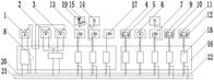 本实用新型公开了一种伐木机用伐头液压总控制系统,包括液压分配模块Ⅰ和液压分配模块Ⅱ,所述液压分配模块Ⅰ和液压分配模块Ⅱ内皆设置有执行元件,所述液压分配模块Ⅰ内的执行元件的一侧分别设置有锯马达、轮边马达Ⅰ、轮边马达Ⅱ、摆锯板油缸、测量轮油缸和压锯板活塞,所述摆锯板油缸、测量轮油缸和轮边油缸的进油口皆并接入有蓄能器和压力传感器。该伐木机用伐头液压总控制系统完全根据伐木机工作过程设置工作执行机构,根据工作执行机构的工况所完成机构的液压总控制系统,利用模块化管理的设计思路,将引入液压分配集成模块,简化液压油路分配任务,形成各执行机构的控制油路简单,易安装,易控制。