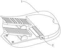 本实用新型涉及公交车技术领域,具体地说,涉及一种公交车制动踏板和油门踏板防卡脚垫块。其包括公交车身,所述公交车身内腔底部包括油门踏板、制动踏板和垫脚胶,所述垫脚胶靠近所述制动踏板的端部设置有防卡脚装置,所述防卡脚装置包括垫块,所述垫块端部设置有安装板,所述安装板通过螺栓螺纹固定在所述公交车身内腔底部,所述垫块远离所述垫脚胶的表面开设有滑槽,所述滑槽内部滑动设置有活动板,所述防卡脚装置截面高度与所述垫脚胶高度相同,所述活动板端部滑动伸出所述滑槽内部,本实用新型可以填补制动油门和垫脚胶之间的间隙,避免卡脚。