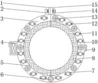 本实用新型公开了一种果树栽培施肥灌根装置,包括第一限位环,所述第一限位环的一侧通过转轴转动安装有第二限位环,所述第一限位环和第二限位环的连接处设置有紧固锁紧组件,所述第一限位环和第二限位环的内侧皆设置有储液腔,所述第二限位环的顶部固定安装气压泵。该一种果树栽培施肥灌根装置,可将装置整体与果树套接固定,通过将多个电动推杆进行同时下降至一定高度,使钻头能够与果树周围的土地实时接触,通过电机带动钻头实时转动进行果树根部打孔,然后通过气压泵将储液腔内部的液体实时导出,通过导流管对果树根部施肥,避免需要对同一个果树周围多次钻孔,来确保果树能够均匀灌根施肥,无需移动装置即可进行多方位全面的施肥工作。