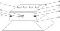 本实用新型公开了一种雷火灸器具,包括座体,所述座体顶部一体成型设置有盒体,所述盒体的内侧活动插接有抽屉,所述抽屉和盒体之间设置有抽拉锁紧组件,所述抽屉的底部固定安装有铁网,所述抽屉的内侧设置有连接限位组件,所述连接限位组件的底部贯穿固定安装有U形网巢,所述座体的底部设置有定位吸附组件。该一种雷火灸器具,在进行日常使用的过程中,改进为抽屉式存放灸条,不需外物固定,方便安全,改进灸具存放灸条的方式能够使得灸条充分燃烧,专门存放灸条的网巢,方便固定且安全,使用完后祛灰方便快捷,顶部增加散热孔、排烟孔,能更有效的排烟散热。