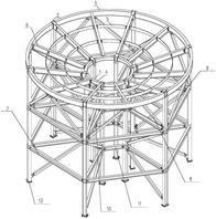本实用新型公开了一种大型锥底装置钢结构支架,属于建筑领域,包括内侧钢柱、外侧钢柱、内侧圆弧板和外侧圆弧板,内侧圆弧板和外侧圆弧板之间设置有顶部倾斜板。通过采用钢结构,梁柱支架采用栓焊的固接节点,柱脚采用铰接节点减少上部结构对底部基础的弯矩作用,设置柱间支撑提高结构稳定性;与设备的接触面采用圆弧形环板,与设备底部接触,结构受力均匀,并且便于现场安装设备,采用钢结构可直接在工厂进行预制,现场通过螺栓连接,能够大幅度提高现场安装效率,采用钢结构,无需钢管和木模板,节省辅材材料成本;同时减少作业人员投入,节约人力成本,构件工厂预制化,提高现场安装效率,有效地实现经济效益的最大化。
