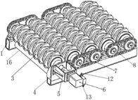 本实用新型公开了一种用于移动破碎站的液压滚轴筛装置,包括支撑座,所述支撑座之间设置有抽拉集料组件,所述支撑座的顶部通过轴承转动安装有连接杆,所述连接杆的表面设置有滚轴筛组件,所述支撑座的一侧表面固定安装有支架,所述支架的一侧固定安装有液压马达,所述液压马达的输出端固定安装有输入轴,且输入轴的一端与支撑座一侧的连接杆外端连接。该一种用于移动破碎站的液压滚轴筛装置,在进行日常使用的过程中,通过液压系统提供的动力,由单一传动轴出入,再通过链传动将动力传递到滚轴筛的其他传动轴中,由设备主系统的液压系统提供的动力,一方面是动力更加稳定,传递更加均匀。