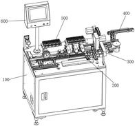 本实用新型涉及切纸机技术领域,具体地说,涉及一种自动切纸机。其包括机架,机架的上端靠近中间的位置设有贴胶纸切胶纸装置,机架表面靠近一侧的上端设有包胶纸过条装置,贴胶纸切胶纸装置的表面靠近一端的位置设有侧面清洗过条装置,贴胶纸切胶纸装置的表面设有电磁阀,机架的表面靠近一角的位置设有触控装置,贴胶纸切胶纸装置包括治具回流输送带,治具回流输送带的侧面靠近一端的位置设有进料装置。本实用新型设计采用自动化设备自动贴胶纸、切胶纸、包胶纸、清洗制品,代替人工繁琐复杂的包胶纸清洗搬运等动作,从而实现电感元器件自动化作业的目的,在提高工作效率的同时也减少了工人在工作时的安全隐患。