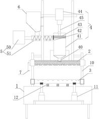 实用新型公开了一种仿真花射骨机,包括支撑台和固定在支撑台的台面上方的上固定模、下活动模、注塑机构、下料传送装置和储料斗,在所述支撑台的台面上竖直固定有多跟导向固定柱,所述下活动模通过直线轴承套设在所述导向固定柱的下端且接近支撑台的台面,该驱动气缸的输出轴向上伸出与所述下活动模的底面传动连接,所述注塑机构竖直固定在所述上固定模的上方,在注塑机构的下端设置有注料口,该注塑机构的下端通过注料口与所述上固定模的上表面连通,所述储料斗设置在所述下料传送装置的上方,所述下料传送装置的出料口与所述注塑机构的上端侧壁连通。本实用新型能方便地将塑料原料送入模内且能够快速地将仿真花瓣进行串联起来。