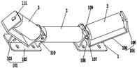 本实用新型公开了一种托辊架,包括托辊支架、平托辊及斜托辊,所述托辊支架为沿左右方向放置的两个,所述平托辊设置在两个托辊支架之间,所述斜托辊设置在托辊支架上,所述托辊支架包括底座、边支板及托辊安装架,所述边支板倾斜的设置于底座上,所述托辊安装架的侧边与边支板连接,托辊安装架的底端固定在底座上,托辊安装架的顶端开设有U型槽,所述平托辊的两端放置于U型槽内,所述斜托辊的一端放置于U型槽内,斜托辊的另一端与边支板连接,所述托辊安装架位于U型槽的上方设置有止脱杆。本实用新型安装简单,具有不易脱落、使用方便及寿命长的优点。