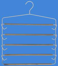 1.本外观设计产品的名称:衣架(铁木结合多层裙裤架)。2.本外观设计产品的用途:本外观设计产品主要用于日常生活中晾挂裤子、短裙。3.本外观设计产品的设计要点:在于形状与色彩的结合。4.最能表明设计要点的图片或照片:设计1主视图。5.请求保护的外观设计包含色彩。6.指定设计1为基本设计。