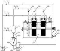 本实用新型公开了一种卧式转盘生物喷淋除臭系统,包括卧式转盘除臭装置、好氧曝气池、二沉池、旋流分离器及浆液稀释箱,好氧曝气池依次与所述旋流分离器、浆液稀释箱及卧式转盘除臭装置连接;二沉池分别与所述浆液稀释箱及所述卧式转盘除臭装置连接。其中卧式转盘除臭装置包括除臭壳体、除臭转盘、转轴及驱动电机,除臭转盘内设有沿径向放射状交替布置的多层挂列式链球防堵填料,转盘两侧分别设置反冲洗管,并采用二沉池出水作浆液稀释水和反冲洗水,实现转盘内填料的自松动和清淤,最终达到填料彻底防堵和系统高效稳定除臭的目的。本实用新型配置简单、占地省、电耗低,可以有效提高系统的抗冲击负荷和环境适应能力。