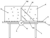 本实用新型涉及一种玻璃转向装置,包括机架、传动辊道、旋转装置及挡板,所述传动辊道设置于所述机架上,所述旋转装置设置于传动辊道上表面的一侧,所述挡板设置于传动辊道上表面的另一侧边沿;所述旋转装置包括旋转盘、旋转轴及旋转杆,所述旋转轴设置于机架上,所述旋转盘与旋转轴的一端连接,所述旋转杆的一端设置于旋转轴上,所述旋转杆朝向挡板的一侧垂直设置有多个连接杆,连接杆与传动辊道上的传动辊平行设置,且当旋转杆旋转至与传动辊道同一水平面时,连接杆置于两相邻传动辊的间隙之间。本实用新型的玻璃转向装置结构简单,安全可靠,使用方便,并且减轻了工人劳动强度,提高了生产效率。