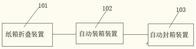 本发明公开了一种纸箱折叠、自动装箱及封箱生产线,包括纸箱折叠装置、自动装箱装置及自动封箱装置,其中纸箱折叠装置包括基板、送料组件、压平组件、取料组件以及折弯组件,所述基板的上表面固定有工作台,所述工作台的上端左右对应安装有第一轨道和第一电机,所述第一电机的输出端转动连接有第一丝杆,所述第一丝杆的外部传动连接有滑块,所述滑块的下端安装在第一轨道上,所述折弯组件固定在滑块的上端,所述工作台的上端焊接有支杆,所述支杆的顶端设置有挡板,所述工作台的外部固定有支架,所述支架的上部焊接有顶梁。本发明大大节约了人力及时间成本,具有自动化程度高,劳动强度小及生产效率高的优点。