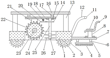 本发明公开了一种农业实验用植物种植碎土装置,包括底板,所述底板的两侧外壁均转动连接有驱动轮,且驱动轮的数量为四个,四个所述驱动轮的外壁设置有等距离呈环形分布的翻地齿,所述底板底部外壁的一侧设置有第二驱动电机,且第二驱动电机与驱动轮之间呈电性连接,所述底板的顶部外壁位于中间的位置开有矩形口,所述底板的一侧外壁靠近底部的位置设置有支撑板,且支撑板底部外壁的两侧均通过螺栓连接有第一液压杆。本发明能够防止结块的土壤固定在地面上导致装置难以对结块的土壤进行破碎,能够防止土壤粘附在破碎辊的表面对破碎辊的工作造成影响,能够防止由于装置的振动导致操作员的双手从扶手上滑落对装置的工作造成影响。