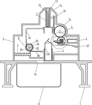 本发明涉及一种涂胶装置,尤其涉及一种食品包装盒涂胶装置。本发明的目的是提供一种可一次对多个包装盒进行涂胶,操作简单,且只需一人即可完成涂胶与粘合密封两项加工,且效率高的食品包装盒涂胶装置。一种食品包装盒涂胶装置,包括有支撑架、机箱、滑动框、压缩弹簧、气缸、收集框等;机箱内右部安装有气缸,支撑架顶部设有机箱,机箱内底部滑动式设有滑动框,滑动框与机箱之间连接有压缩弹簧,支撑架中部开有通孔,支撑架下方放置有收集框。本发明通过操作移动涂胶组件将滑动框内的包装盒进行涂胶,如此,对多个包装盒进行有效的提高了涂胶效率。