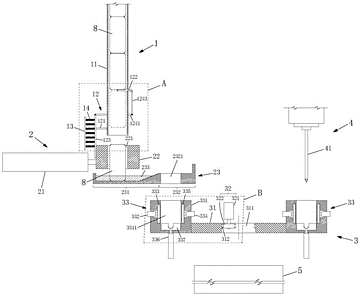 本发明公开了一种在红酒瓶塞生产过程中用于对瓶塞逐个进行打孔的装置,其包括瓶塞释放机构(1)、瓶塞转移机构(2)、瓶塞夹持机构(3)和电动钻孔机(4);其中,瓶塞释放机构(1)用于将需要钻孔的瓶塞逐个释放到瓶塞转移机构(2)中,瓶塞转移机构(2)则用于接住从瓶塞释放机构(1)落下的瓶塞并将其转移至瓶塞夹持机构(3)中,瓶塞夹持机构(3)用于接住从瓶塞转移机构(2)落下的瓶塞并将其夹持住做绕瓶塞夹持机构(3)中心线的旋转运动,电动钻孔机(4)则用于对被夹持住的瓶塞进行钻孔。本发明通过自动化的方式实现了瓶塞的钻孔,其能够批量对瓶塞进行逐个钻孔,提升了钻孔的工作效率,减少了钻孔耗时。