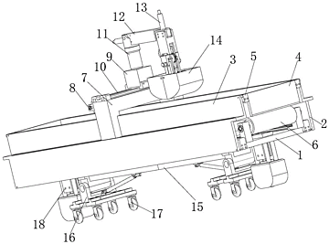 本发明涉及公路施工技术领域,且公开了一种公路工程施工用物料转运装置及使用方法,包括第一支撑板,所述第一支撑板与其两侧连接的第二支撑板形成U形外壳,所述U形外壳的顶部固定设置有转料盒,所述转料盒的两侧均螺栓连接有挡料板,所述挡料板和转料盒之间固定设置有使挡料板围绕着转料盒旋转的第一限位组件,所述第一支撑板的顶部固定设置有第一横向水平位移组件,所述第一横向水平位移组件的输出端固定设置有第一滑座,所述第一滑座的一侧固定设置有纵向水平位移组件。本发明解决了一般物料转运装置无法对粗集料进行筛选的目的,使得粒径较小的粗集料不会通过抓料盒进入到转料盒内,从而避免了因粒径较小的粗集料混入混凝土的现象发生。