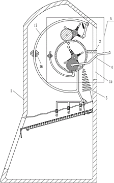本发明涉及一种脱粒装置,尤其涉及一种花生脱粒装置。本发明的技术问题是如何提供一种能够快速对花生进行脱粒,能够对花生根茎进行分离的花生脱粒装置。一种花生脱粒装置,包括有箱体和固定板等;箱体的底部左侧和上部右侧都开有开孔,箱体的右部开孔处固定连接有固定板。本发明通过摁压第一摆动杆,通过第一齿轮和第二齿轮进行传送,从而带动转盘上的伸缩脱粒装置对放置在固定板上的花生进行挤压脱落,还通过第三摆动杆和挂钩使第二刀片与第一刀片配合,从而达到对花生根茎进行去除的功能。