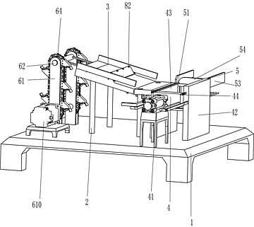 本发明涉及一种碎化设备,尤其涉及一种木材批量碎化设备。技术问题是如何一种能方便人们对木材进行碎化,比较省力,工作效率高,且不易受伤的木材批量碎化设备。一种木材批量碎化设备,包括有:底座,底座一侧安装有四根支撑柱;上料平台,上料平台安装在四根支撑柱之间;推料机构,安装在底座上,用于将木材进行碎化。本发明通过将木材放置于上料机构上,启动上料机构运作通过上料平台上,进而木材掉落至推料机构内,启动推料机构运作,将木材进行碎化,且推料机构运作还带动回料机构运作,回料机构运作将未碎化木材推回至推料机构再次被碎化,如此,可方便人们对木材进行碎化,省时省力,工作效率高。