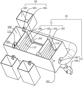 本发明公开了一种鱼苗筛选系统及其方法,涉及水产养殖领域,其技术方案要点是针对鱼苗筛选设置的一套通过旋涡泵作用使水流带动百叶窗式栅格筛选鱼苗系统以及通过鱼苗筛选系统的鱼苗筛选方法为a、鱼苗输入,b、鱼苗消毒,c、鱼苗筛选,d、鱼苗输出,e、鱼苗培养,f、二次筛选,技术效果是,鱼苗通过水流和不同荧光灯引导式游过筛选装置进行筛选,无需人工移动筛选装置进行筛选,无需将筛选完的鱼捞起,自行输出鱼苗,对鱼苗损伤小,不会造成缺氧,存活率高。