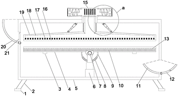 本发明涉及农业设备领域,具体是一种农业用种子快速干燥装置,包括水平设置的支撑安装筒,支撑安装筒的下端四角均设置有支撑安装柱,支撑安装筒的左上角伸出设置有弧形进料筒,支撑安装筒配合弧形进料筒的底部设置有进料闸门,所述支撑安装筒的内部设置有摆动多孔导料板,摆动多孔导料板的上端等间距设置有若干导料槽,摆动多孔导料板的正上方设置有摆动安装板,摆动安装板的内部设置有均匀导流腔,通过升降摆动调节,使得种子能够顺利的向下导料,通过适应性的摆动调节,使得错位的导流结构配合,实现高质量的导流,实现种子周围的空气精准导流,配合呼吸式的导流结构和电辅热,显著提升种子的干燥效率和质量。