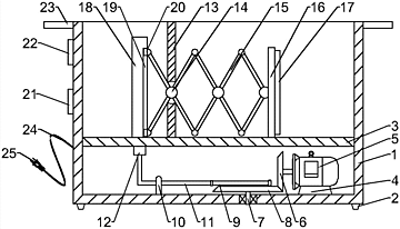 本发明公开了一种用于家禽养殖的植物类食料安全加工装置,包括壳体,所述壳体内部下方固定连接有水平隔板,水平隔板下方右侧固定连接有电机座,电机座上方固定连接有电机,电机输出端固定连接有主动锥齿轮,所述壳体底部通过轴承转动连接有纵向固定轴,纵向固定轴顶部固定连接有从动锥齿轮,从动锥齿轮与主动锥齿轮相啮合,所述从动锥齿轮上方偏心处转动连接有第一传动连杆。与现有技术相比,本发明的有益效果是:本发明结构简单,使用方便,在使用时能够充分的将植物类食料进行切割,保证植物足够细碎,从而便于家禽进行采食,避免植物类饲料不经加工,家禽仅采食植物叶子造成的浪费情况,值得推广。