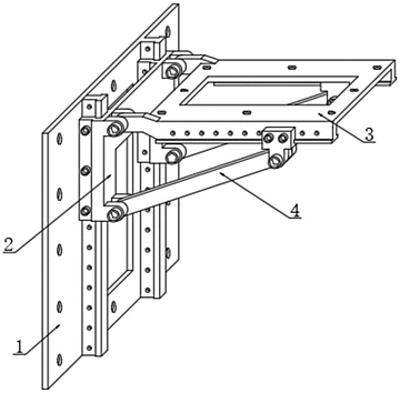 本实用新型为一种建筑设备安装用支撑架,具体涉及建筑设备技术领域,包括支架安装板,所述支架安装板的一侧外表面滑动连接有高度调节构件,所述高度调节构件的一侧上端外表面转动连接有设备安装支撑板,所述设备安装支撑板的下表面安装有支撑构件,所述支架安装板的一侧外表面开设有减重口,所述支架安装板的一侧外表面焊接有第一滑轨,所述第一滑轨的前表面开设有高度调节孔,所述高度调节构件的一侧外表面焊接有滑板,所述滑板的内部开设有第一滑槽。本实用新型建筑设备安装用支撑架,能便捷的调节支撑架的仰角与俯角,本装置的连接处设置有多个固定点,本支撑架的连接较为灵活。