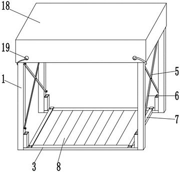 本实用新型公开了一种拆卸方便的钢结构建筑,包括四个立柱,相邻的两个立柱之间设置有顶梁,顶梁的底部设置有底梁,相邻的两个立柱之间设置有第一拉杆和第二拉杆,且第一拉杆和第二拉杆通过轴铰接,第一拉杆和第二拉杆的两端外壁均开有插装孔,两个底梁之间通过螺栓连接有两个辅助梁,且两个辅助梁之间设置有均匀分布的底板,立柱的顶部和底部的一侧外壁均焊接有连接筒,连接筒内部开有插接孔,顶梁和底梁的一侧外壁均焊接有两个插杆,插杆通过插接孔插接于连接筒内部。本实用新型通过设置的立柱、顶梁和底梁,利用顶梁和底梁上的插杆与立柱上的连接筒进性插接,使得工棚实现便于拆装的效果,从而节约了拆装工棚所用的时间。