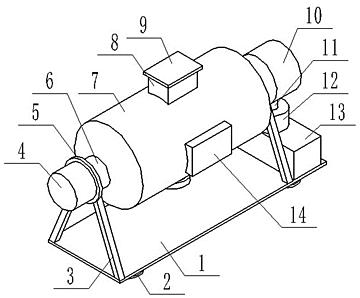 本实用新型公开了一种建筑工程用水泥搅拌装置,包括底板、底座、支撑架,所述底板一侧通过螺钉连接有所述底座,所述底板远离所述底座的一侧通过螺栓连接有所述支撑架,所述支撑架通过焊接的方式连接有轴承座一,所述轴承座一的一侧通过螺钉连接有安装盘,所述安装盘一侧通过螺栓连接有搅拌电机,所述轴承座一远离所述安装盘的一侧通过螺钉连接有搅拌桶。有益效果在于:本实用新型通过设置抽风口、导风罩、导风管、抽风机、搅拌电机、搅拌片的设计,能够对搅拌桶内进行快速降尘,避免了出料时对环境的污染,环保性较高,能够对搅拌电机的转速进行调节,自动化程度较高,搅拌效率较高,搅拌效果较好,具有较高的实用性和经济性。