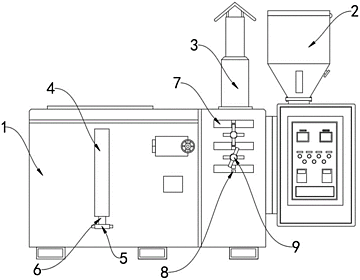 本实用新型公开了一种环保生物质熔化装置,包括加工壳,所述加工壳的内侧安装有放置板,所述放置板的两侧均安装有钢索,所述钢索上端的一端安装有限位块,所述限位块的内侧安装有丝杆,所述丝杆的外表面安装有焊接套,所述丝杆的下端安装有旋转板,所述加工壳一侧的上端安装有排烟筒,所述排烟筒的下端安装有净化板,所述净化板的一端安装有支撑板,所述支撑板与加工壳通过第二弹簧连接,所述净化板的另一端安装有密封板,所述密封板的一端设置有卡槽,所述卡槽的内侧安装有卡板,所述卡板的内侧安装有连接轴,所述连接轴与加工壳通过第一弹簧连接。本实用新型方便替换净化气体的材料,方便取料。