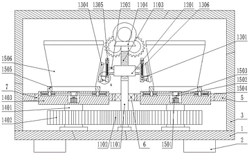 本发明涉及环保领域,公开了一种环保用垃圾桶高效清洗装置,包括箱体、夹持机构、自转机构、清洗机构和动力输出机构;夹持机构,包括横板,横板的两端固定连接箱体内壁,横板的两侧转动连接底块,底块远离地面的一侧设有夹紧装置,夹紧装置用于固定垃圾桶底部;动力输出机构,用于驱动自转机构和清洗机构工作;自转机构,包括与纵轴固定连接的主动齿轮,主动齿轮的两侧啮合连接从动齿轮,从动齿轮同轴连接底块。本发明适用于一种环保用垃圾桶高效清洗装置,通过设置夹持机构对于垃圾桶进行固定,并且清洗机构可以使得本装置可以对于不同锥度的垃圾桶进行清洗,配合自转机构带动垃圾桶自转,使得垃圾桶的清洁效率更高,提高了清洗的效率。