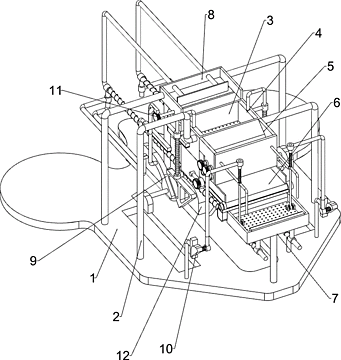 本发明涉及一种浸油装置,尤其涉及一种链条生产用环保型浸油装置。本发明提供一种能对链条进行除锈,同时能将链条上的水擦掉,而且能将链条输送至指定位置,并且能对链条进行浸油和将链条捞起的链条生产用环保型浸油装置。一种链条生产用环保型浸油装置,包括有:底座和第一支撑杆,底座顶部对称固接有第一支撑杆;存料框,两根第一支撑杆之间连接有存料框,存料框的数量为一个,存料框的形状为正方形。本发明通过设有除锈剂浸泡捞起机构,除锈剂浸泡捞起机构与自动捞起擦拭输送旋转机构配合,能够实现将存料框内的链条捞出;擦水机构与自动捞起擦拭输送旋转机构配合,能够实现对链条上的除锈剂进行擦拭的工作。