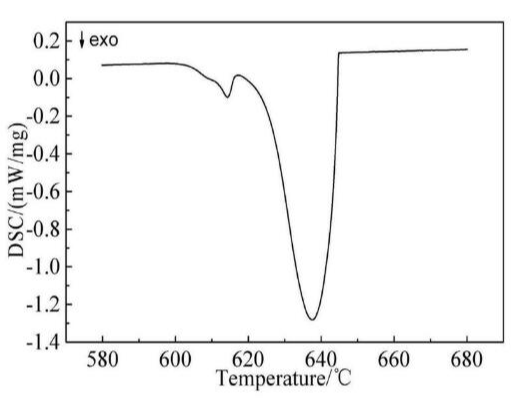 本发明公开了一种具有低熔点共晶组织铝合金的高温处理方法,先通过示差扫描量热分析确定待处理铝合金铸锭的低熔点共晶温度及熔点;将铝合金铸锭放入热处理炉中,将温度从室温开始升温至低熔点共晶温度以上,熔点以下,然后保温4?8h,取出后淬火即可;所述铝合金铸锭的各组分的质量百分数如下:Zn≤5,In≤0.03,Er 0.6?4,Al余量。通过本发明的铝合金的高温处理方法,相对普通热处理,可以使偏析组织均匀化,析出适量的球化组织,通过本发明方法处理的铝合金,合金材料组织更加均匀,自腐蚀电位降低,自腐蚀电流密度升高,有着较好的硬度,阳极性能变得更优。